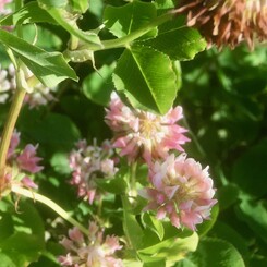 Alsike clover is a semi-erect biennial or short-lived perennial. Grows from a crown that produces many prostrate stems up to 1 m in length and a height of 30-60 cm. Flowers are dense clusters on the ends of secondary branches from the main stem; globe-shaped pale pink/white, fade to brown and 2.5 cm in diameter. 1-3 seeds per pod ~1.5 million/kg