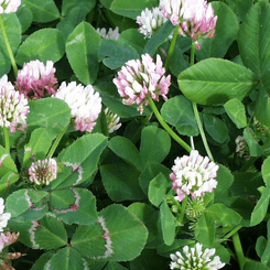 a temperate legume that grows to over 80 cm tall but remains prostrate when grazed with hollow, hairless stems with three hairless trifoliate leaflets. Leaflets are generally plain green while others have white to silver, pink or purple markings, flowers in clusters head 2 - 3 cm in diameter, small white-pink flowers, self-seeding annual, 3-4 Seeds in a Pod which shatter easily on maturity. Used as a part of permanent pastures, or in hay mixtures or cover crops