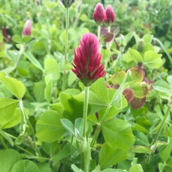 A native to most of Europe is a soft-seeded, deep-rooted annual clover, with upright growing habit and bright dark red elongated flower heads produced above the trifoliate leaves in mid to late spring. Its approximate has a 122-day life cycle during this time the plant can reach up to 60 cm in height. Its quick establishment and short life cycle make it ideal for short-term rotations. Sow seed in late summer to early autumn. The plant is dormant in winter, then quickly grows to a height of 1m in spring
